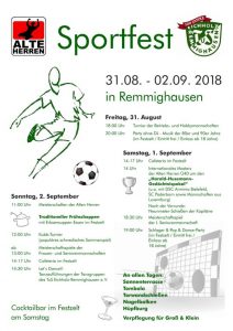Vom 31.08. bis 02.09.2018 findet das alljährliche Sportfest der Alten Herren statt. Auch in diesem Jahr wurde wieder ein schönes Programm auf die Beine gestellt: