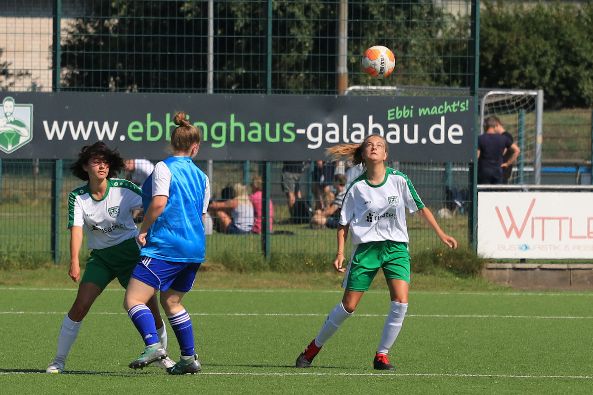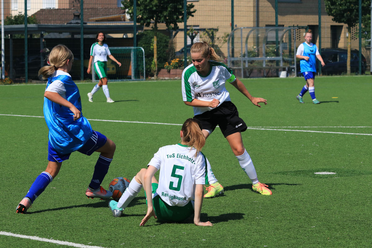 Das Heimteam konnte zunächst mit etwas mehr Ballbesitz aufwarten, doch vorm Eichholzer Strafraum war Schluss! Die hochkonzentrierte TuS-Defensive fing die Angreiferinnen in Blau-Weiß frühzeitig ab.