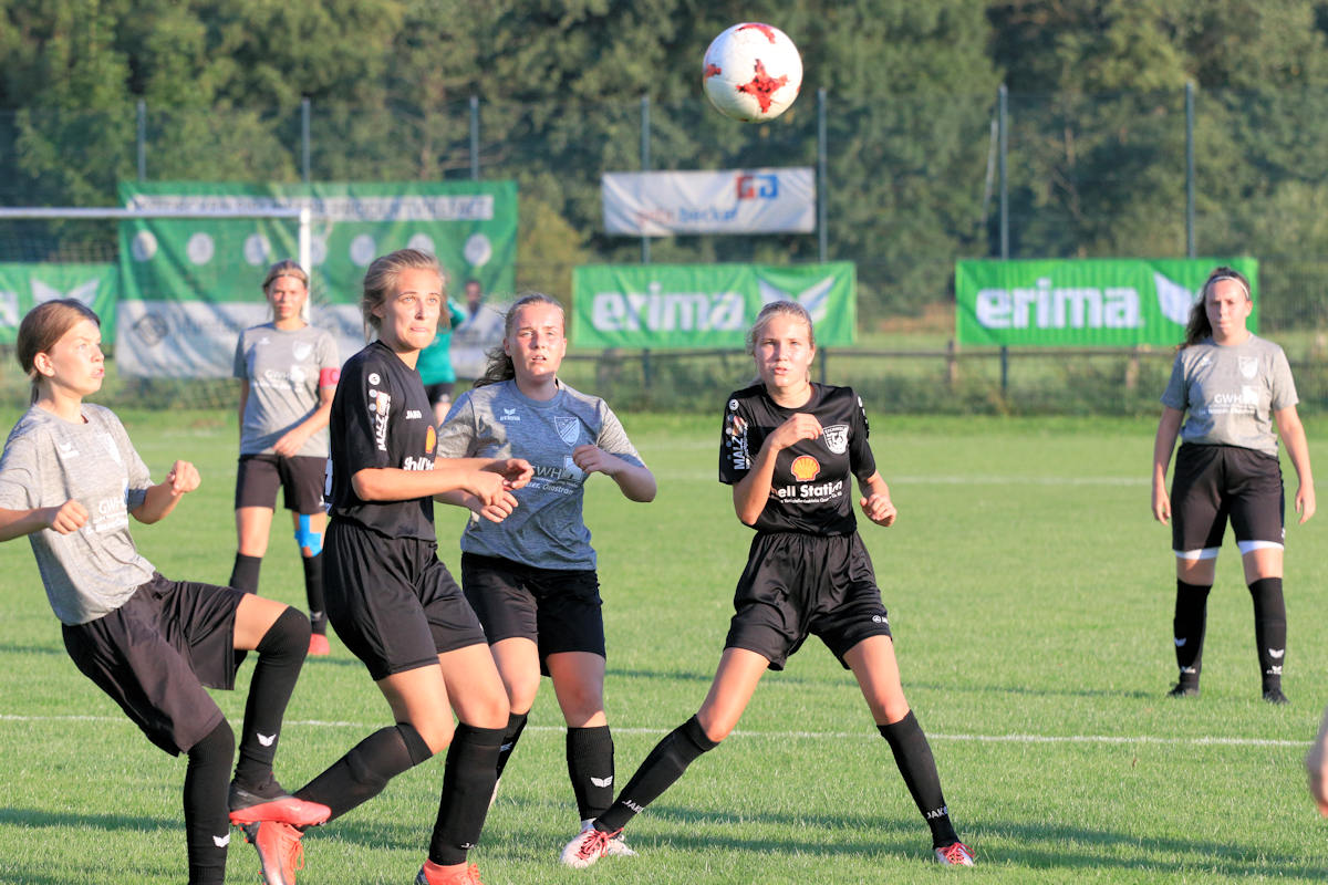 Die Vorentscheidung in der 60ten Spielminute. Dabei hatte das Heimteam davor schon etwas den Angriffsschwung vermissen lassen, nachdem es zu häufig an der starken TuS-Defensive scheiterte. Eichholz hatte sogar noch weitere gute Torchancen. Darunter ein Pfostenschuss von Celine und ein schöner Kopfball von Aliana nach einer mustergültig getretenen Ecke.