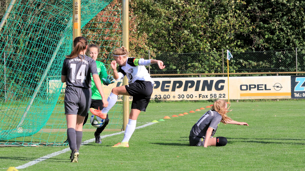 Ziemlich genau in der Mitte zwischen Gütersloh und Rietberg liegt der Ort Varensell. Die Fußballmädels des SC Grün-Weiß Varensell empfingen den TuS bei strahlendem Sonnenschein auf der herrlichen Naturrasenanlage.