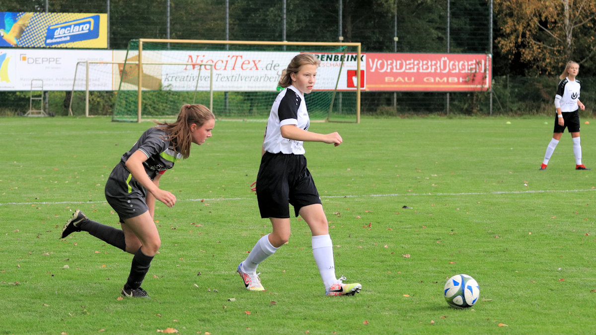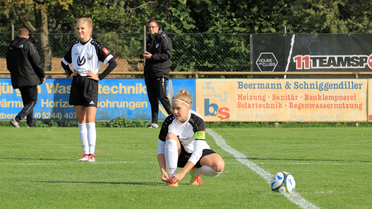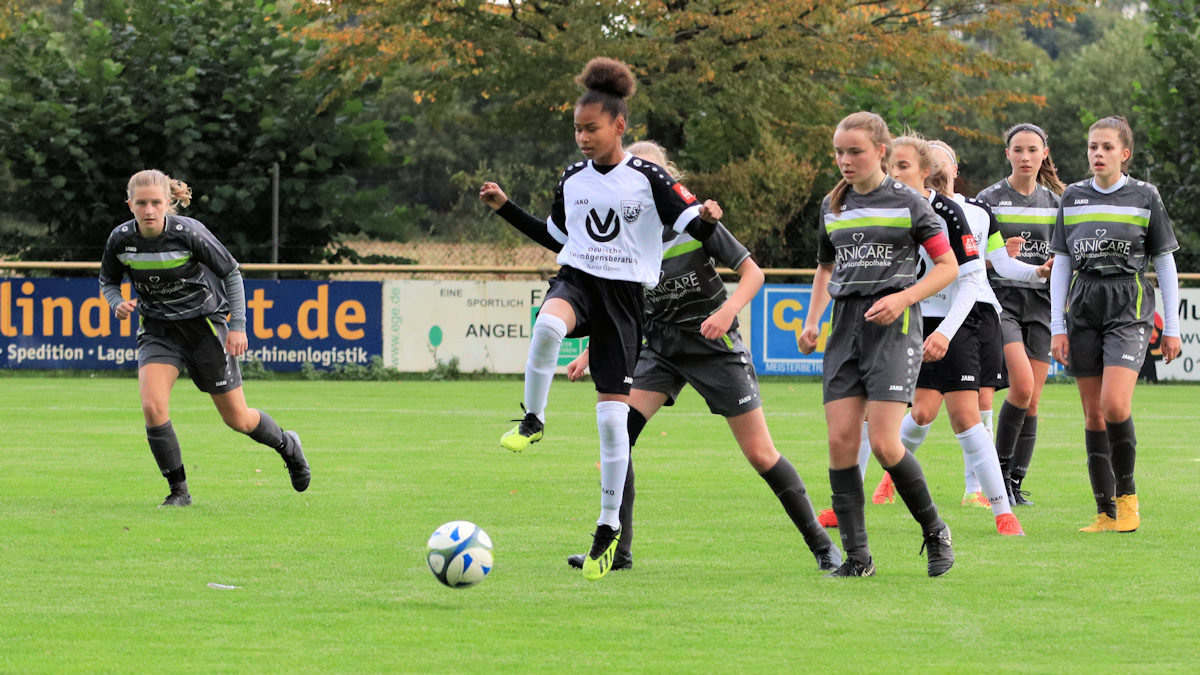 Fast an der Grundlinie konnte sie ihre Gegenspielerin abschütteln und das Leder zurück an den 16er legen. Madleen nahm den Ball mit und hämmerte die Murmel mit der Picke in den linken Winkel. Am Ende hieß es 1:9 und es gab zurecht viel Lob aus der Eichholzer Betreuerecke. Ein Spiel in dem sich die souveränen Eichholzer Mädels auch mit reichlich Treffern belohnen konnten. Das Duell der beiden ungeschlagen Temas der Liga steht nach den Herbstferien an. Auf dem Naturrasen in Rietberg gastiert der TuS beim SV Schwarz-Gelb-Bokel. Ein paar Bilder vom Samstag gibt´s hier: Klick 😉