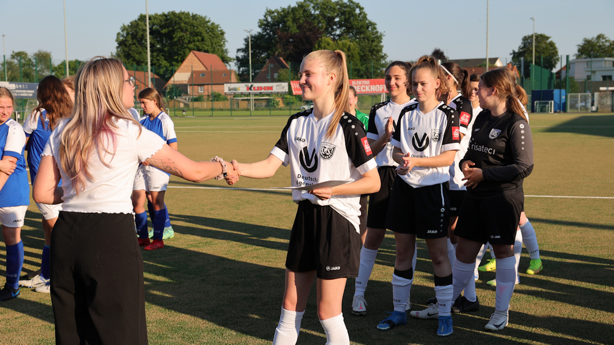 Souverän feiern unsere B-Juniorinnen die Meisterschaft 2022 in der Kreisliga Paderborn/Detmold.