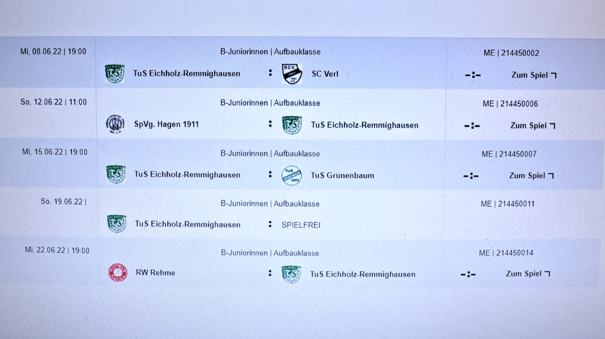 Hier eine Übersicht der Spiele mit Eichholzer Beteiligung: