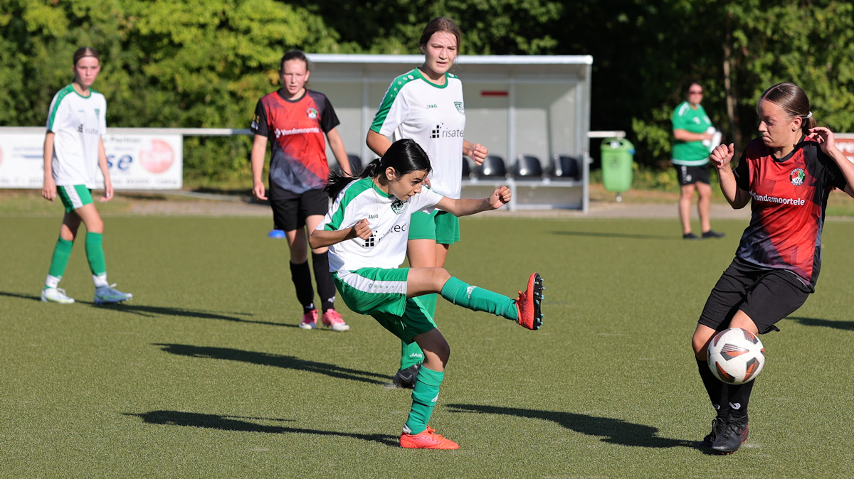 Einsatz und Laufbereitschaft trotz der extremen Hitze überzeugten auf beiden Seiten. Die Trainerinnen Janine und Helene hatten über die gesamte Spielzeit ein besonderes Auge auf die Neuankömmlinge im Team, die erstmals im Eichholzer Dress auflaufen durften. Mit gut getimten Wechseln bekamen alle Spielerinnen genügend Einsatzzeit.