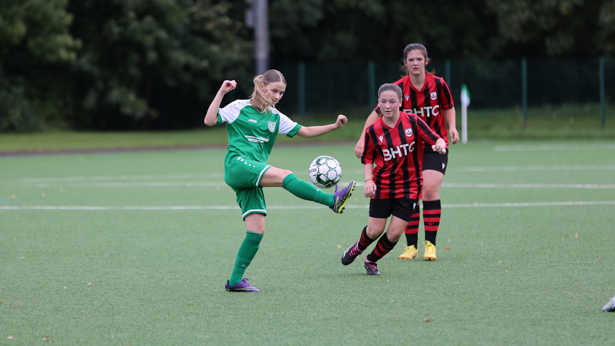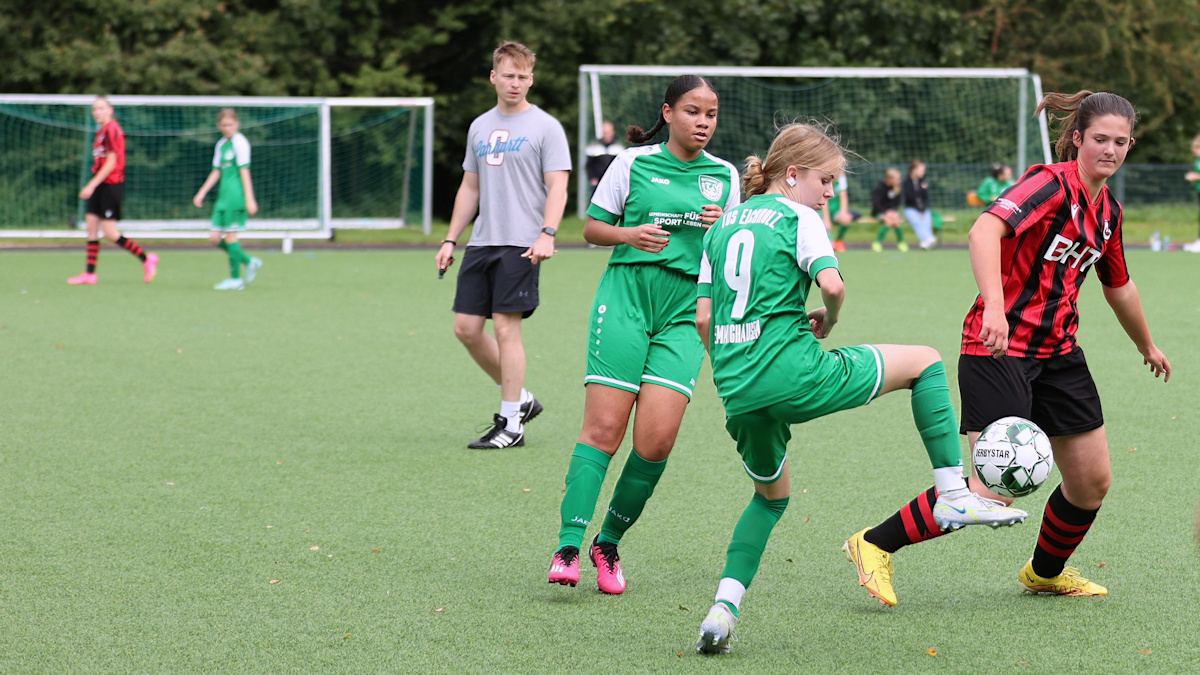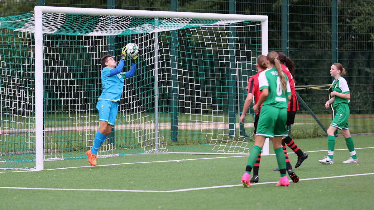 Ein prima Ergebnis konnte unsere B1 in der Bezirksliga zum Saisoneinstieg mit einem hervorragenden 0:0 bei RW Ahlen verbuchen. Im Vorjahr gab es für Grün/Weiß ohne die verletzungsbedingt ausgefallene Fängerin Janni auf der Anlage in Ahlen eine klare Niederlage, wie sich die meisten noch erinnerten. Zurück zwischen den Pfosten machte Janni den Hausherrinnen das Tore Schießen zur schier unüberwindbaren Herausforderung und ließ die Angreiferinnen förmlich verzweifeln. Darüber hinaus sorgte ihr Mitwirken für Selbstvertrauen und Sicherheit in der TuS Defensive. Mittelfeld und Offensivkräfte konnten trotz Feldüberlegenheit der Gastgeberinnen etliche gefährliche Angriffe starten, die durchaus einen Auswärtserfolg hätten nach sich ziehen können. Leider wurden beste Torchancen nicht genutzt, dennoch erspielte sich der TuS am Ende ein verdientes Remis beim Favoriten.