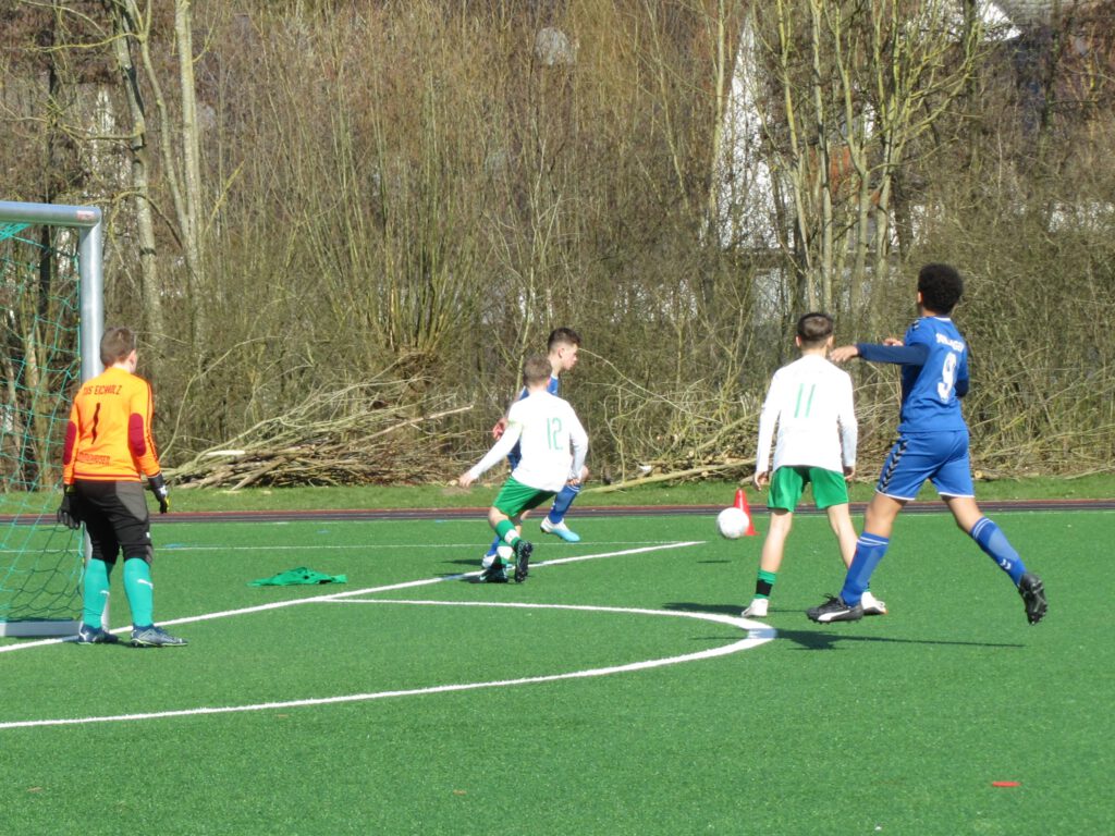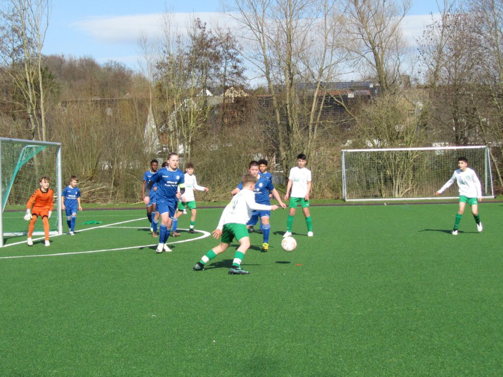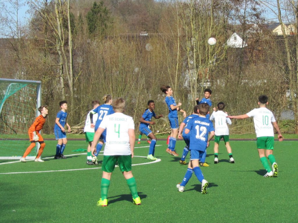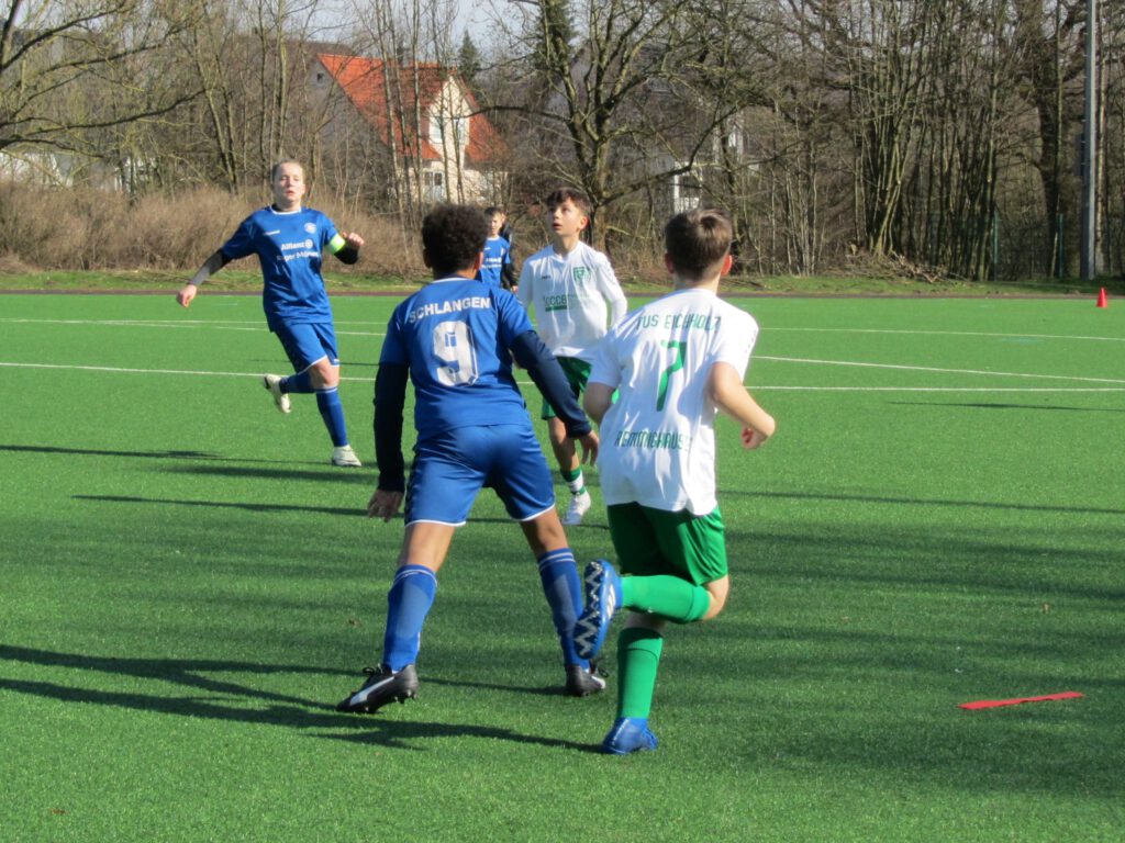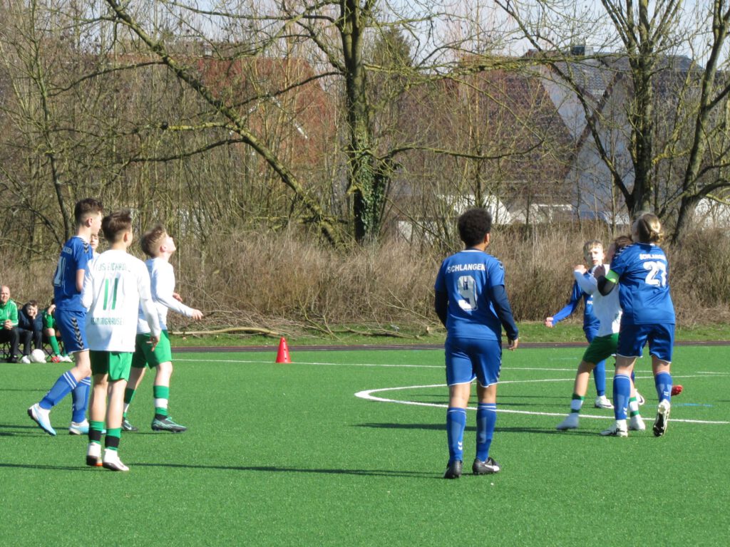 Am heutigen 16. Spieltag empfängt die D-Jugend auf heimischen Platz die Kicker der JSG Schlangen-Oesterholz-Kohlstädt. Der heutige Gegner beweist eindrucksvoll mit über 60 geschossenen Toren in der aktuellen Saison, dass der Angriff eine Stärke der Mannschaft ist. Der Matchplan des TuS sieht vor schnell ein Tor vorzulegen, um die Maschinerie der JSG nicht in Gang kommen zu lassen. So baut man früh Druck auf den Gegner auf. Mit zunehmender Spielzeit kommt die JSG aber immer mehr ins Spiel und es fällt bereits in der 7. Spielminute das erste Tor für die JSG. Dem TuS fällt es schwer Raum für das eigene Passspiel zu gewinnen, die JSG macht das Spiel.