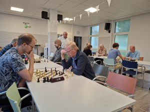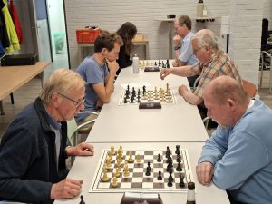 Am 10. Juli wurde wieder unsere jährliche Blitzmeisterschaft durchgeführt. Zehn Vereinsmitglieder und ein Gast spielten mit jeweils fünf Minuten Bedenkzeit in insgesamt 110 Spielen um den Titel des Vereinsmeisters im Blitzen 2025. Typisch für diese kurzen Bedenkzeiten kam es zu überraschenden Spielverläufen und Entscheidungen in den letzten Sekunden, die die Spannung in jeder Partie bis zum Schluss hochhielten und dafür sorgten, dass auch Spieler mit niedrigeren DWZs Punkte gegen formell stärkere Gegner sammeln konnten.
