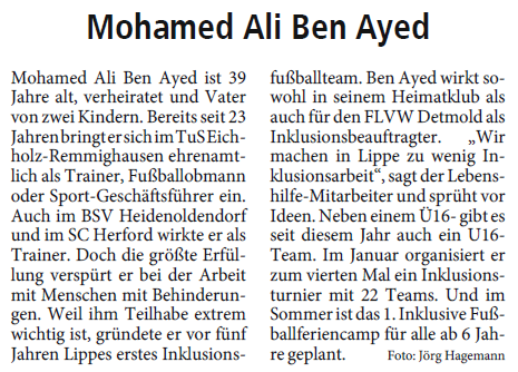 Nominiert ist auch unser Mohamed – für sein herausragendes Engagement, seine Leidenschaft für den Inklusionssport und seinen unermüdlichen Einsatz auf und neben dem Platz besonders für unsere Inklusionsmannschafften!