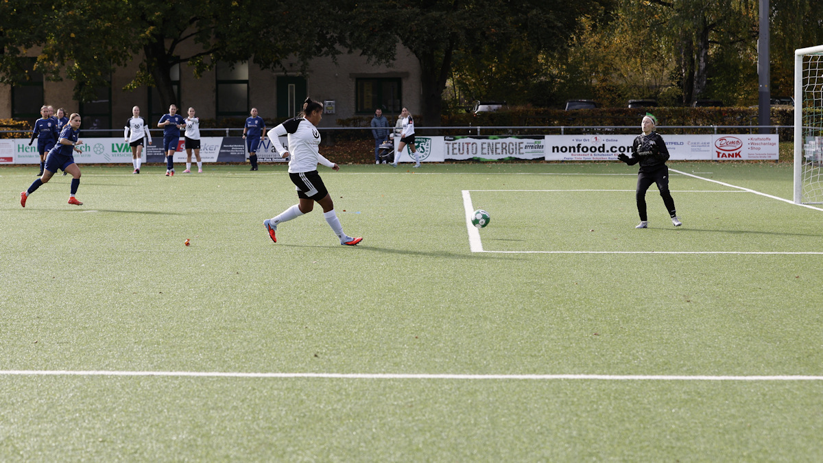 Direkt nach dem Anstoß hatten die Gäste ihre Torchance, Anna-Maria war zur Stelle und parierte sicher.
