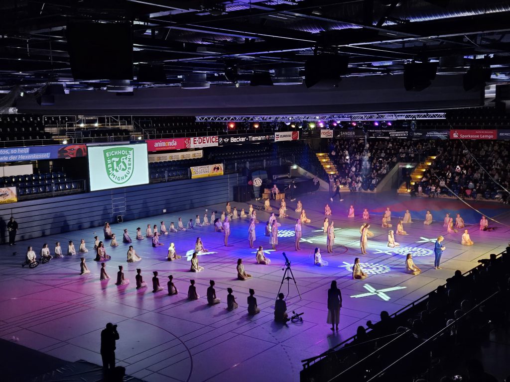 Denn das Tanzprojekt „Sky-Light“ unseres TuS mit 81 Turnerinnen und acht Einrädern tanzte zu „A Sky Full of Stars“ von Coldplay eine imposante und atemberaubende Choreo unter Leitung von Felice Schwartmann und Miriam Lalk. Worte können diese Performance kaum beschreiben, deshalb seht selbst: