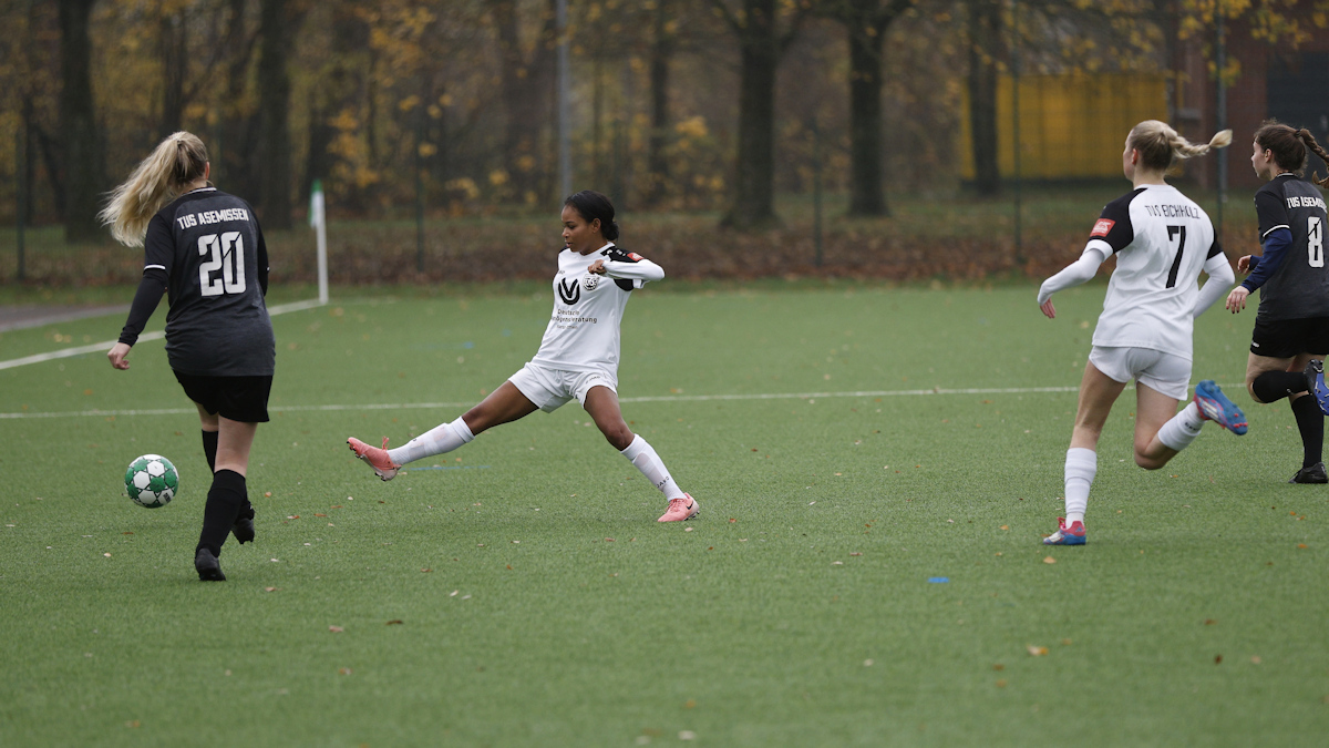 Bereits zur Pause hatten die 2 Treffer von Melike (12. und 30.) und das 3:0 von Jasmin (40.) die Vorentscheidung bedeutet. Im letzten Spiel der Hinserie hatten wir den TuS Asemissen über die gesamte Spielzeit fest im Griff. Coach Xemgin Demir fehlte allerdings nach der effektiven Chancenauswertung der ersten 45 Minuten eine akzeptable Torquote im Durchgang 2. Viel Lob verteilte er dennoch für die Spielfreude und geringe Fehleranfälligkeit. Genau das führte natürlich dazu, dass eine Aufholjagd der Gegnerinnen erst gar nicht aufkam. Die Offensivqualitäten des TuS Asemissen reichten bei Weitem nicht, unseren Defensivverbund zu durchbrechen. Nach dem verdienten Sieg feierten wir gemeinsam mit den Fans den gelungenen Abschluss der Hinserie. Mit 9 Siegen, 3 Remis und nur einer Niederlage erreichten wir 30 Punkte und etablieren uns fest in den Top 4. Ob wir am Ende der Hinserie auf dem dritten oder vierten Rang stehen werden, entscheidet sich im Nachholspiel zwischen SC Peckeloh und dem TuS Asemissen am kommenden Samstag. Der SC Peckeloh kann uns mit einem Dreier in der Nachholpartie mit insgesamt 31 Punkten noch vom aktuellen dritten Platz verdrängen. Für uns geht es am Sonntag, den 30. November mit dem Rückspiel gegen den FC Donop-Voßheide weiter. Anstoß in Remmighausen ist für 11 Uhr geplant. Das Topspiel des ersten Rückrundenspieltages, der FC Don-Vos belegt aktuell mit 34 Punkten den ersten Platz, vor Tura Löhne (ebenfalls 34 Punkte).  Wir freuen uns auf Eure Unterstützung