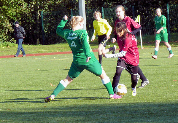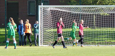 Zu dem heutigen Spiel hat Rolf wieder mal herrliche Fotos beigesteuert. Danke hierfür. Eine andere Aufgabe sollte Rainer heute übernehmen. Einen persöhnlichen Wunsch sollte er heute erfüllen, nämlich Celine in ihren Angriffsbemühungen zu unterstützen und laut anzufeuern. Dieses gelang dann auch hervorragend, nachdem Jessica sich über links den Ball erkämpfte zu Julia passte, die wiederrum herrlich Celine in Schussposition brachte. Und da war es geschehen, der Ball schlug ein zum 7:1 Endstand. Nicht nur, dass die Mädchen heute die Niederlage gegen Sabbenhausen gut weggesteckt haben, nein heute war auch wieder klar zusehen, dass man dieses Spiel gewinnen wollte. So bleibt man weiter im Rennen um die Meisterschaft. Danke an die vielen Eltern, welche die Manschaft angefeuert und unterstützt haben. Mitgespielt haben: Ulrike, Sophia, Madleen, Birte, Yasmin, Marielle, Julia, Celine, Jenny, Sina, Tina. Eingewechselt wurden: Jessica, Romina, Finja und Paula, welche sich alle gut einfügten.